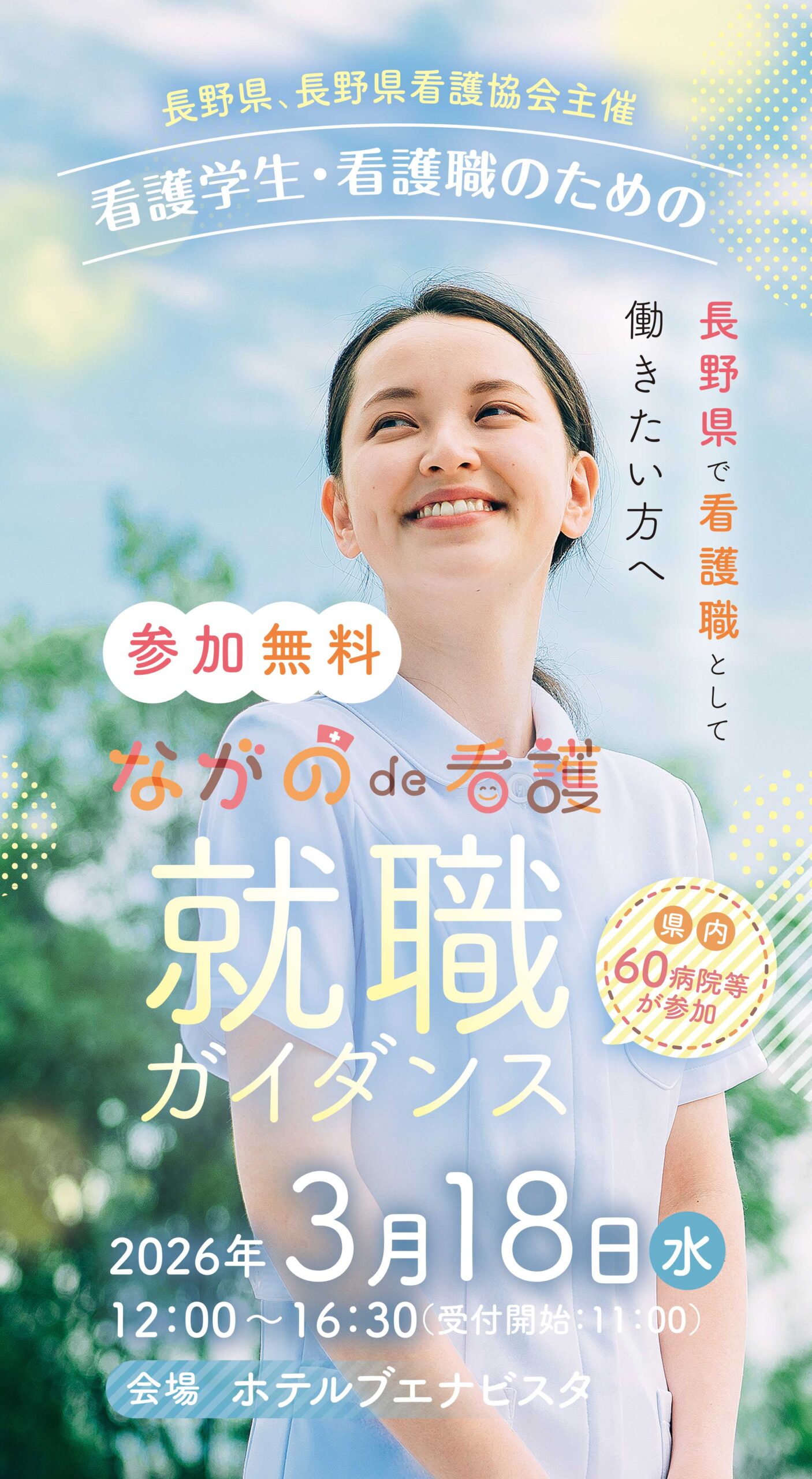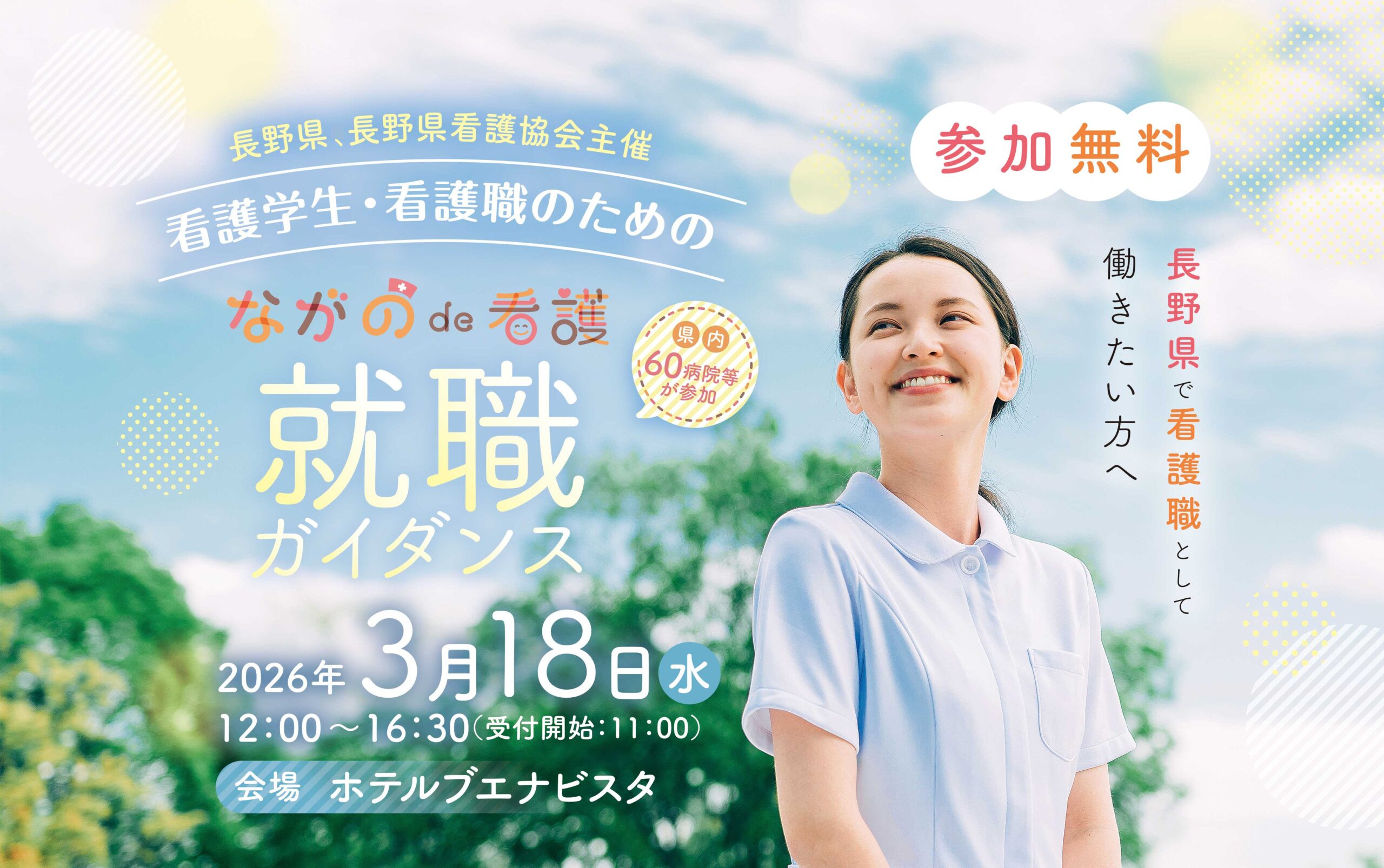 ※本ガイダンスは、昨年度まで「信州で看護。」の名称で実施しておりましたが、本年度より「ながのde看護」と名称を変更いたしました。