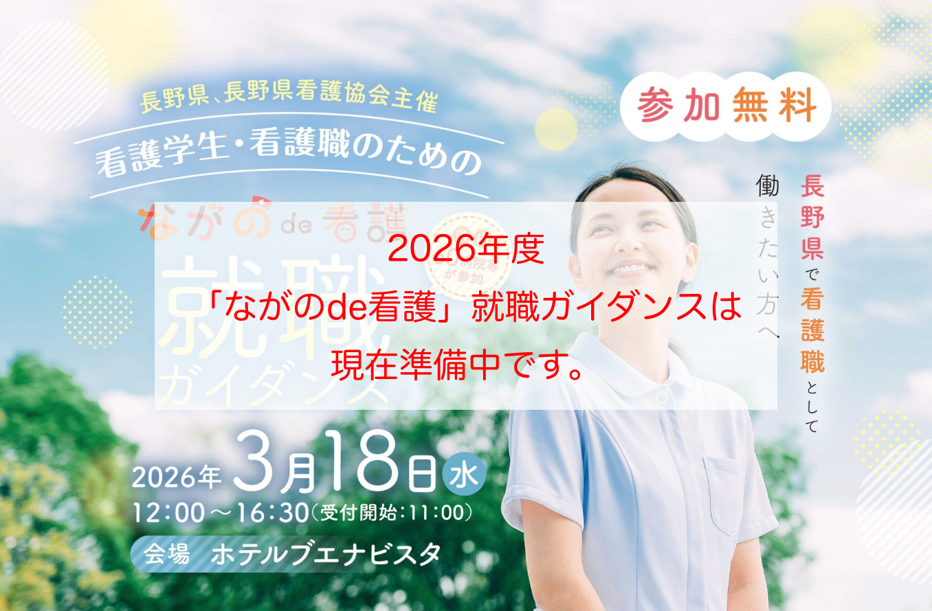 ※本ガイダンスは、昨年度まで「信州で看護。」の名称で実施しておりましたが、本年度より「ながのde看護」と名称を変更いたしました。