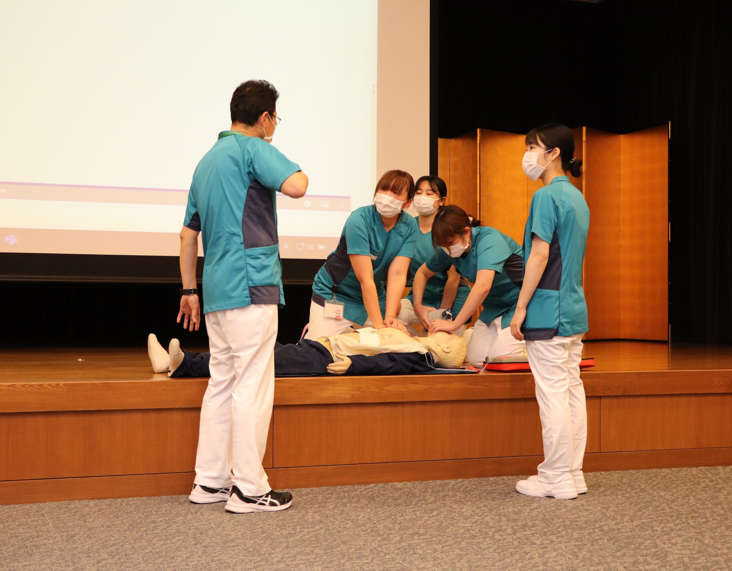 当院は総合診療外来、地域包括医療病棟、回復期リハビリテーション病棟、療養病棟、老健、特養、検診センター、透析センター、リハビリテーションセンター、診療所(3ヶ所)、訪問看護、訪問リハビリ、などで構成されています。看護方式は固定チームナーシング方式で、新人教育にも力を入れており、プリセプターシップを導入し、集合研修を取り入れ、現場教育(OJT)へとつなげています。